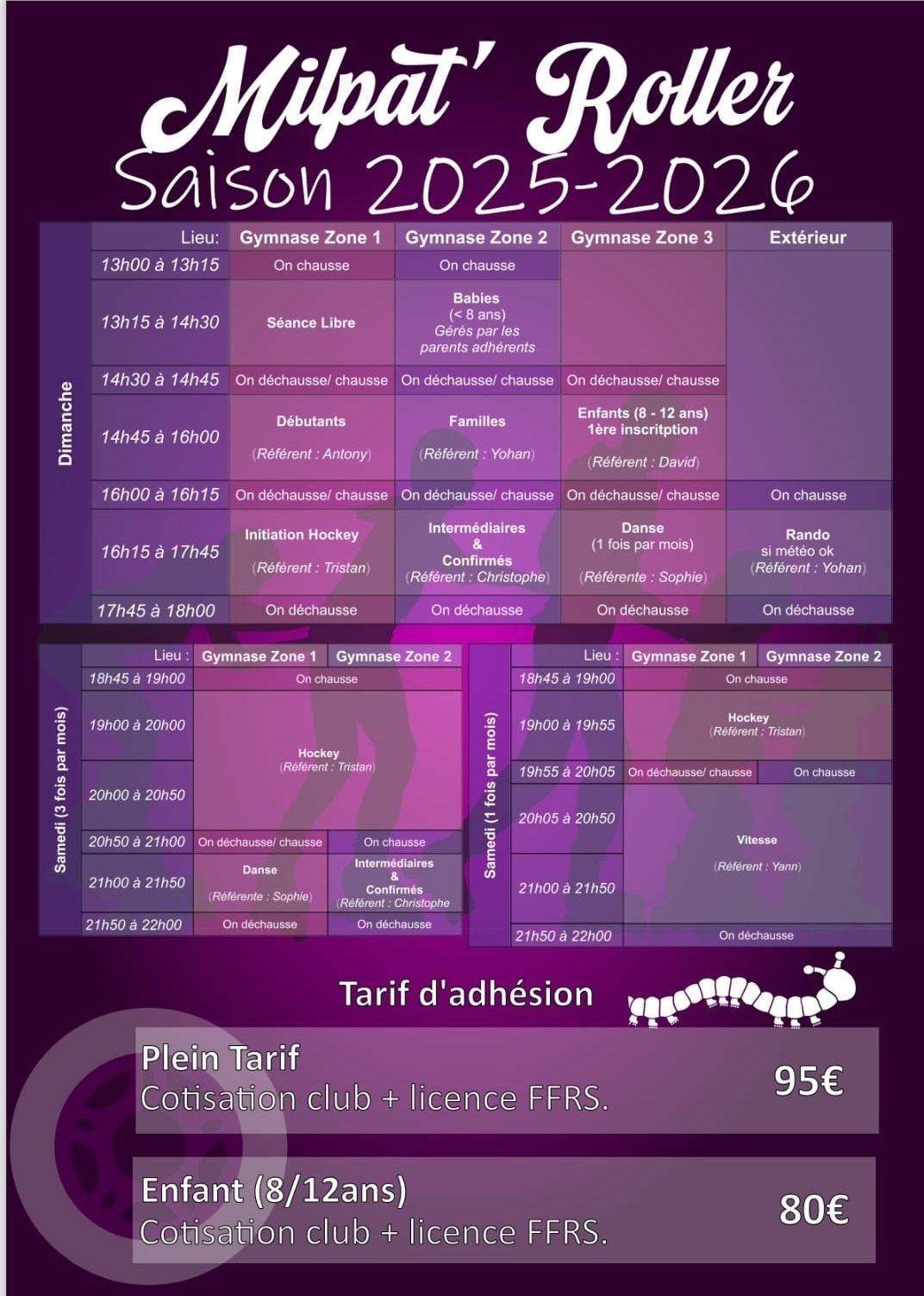 - Des activités occasionnelles : soirée roller party ouverte au public, week-end roller,